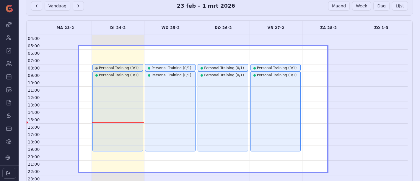 The availability in the calendar is rather cumbersome if you want to present an open calendar to your customers. I now have to create a time slot for each separate hour of PT sessions during the day (I can repeat this for each weekday). It might be better to be able to set a duration (e.g., 60 minutes) for the product (in this case, a PT session) and then set the availability in the calendar from 8:00 a.m. to 8:00 p.m. This way, an entire day is scheduled in one go (and, by extension, the entire year).